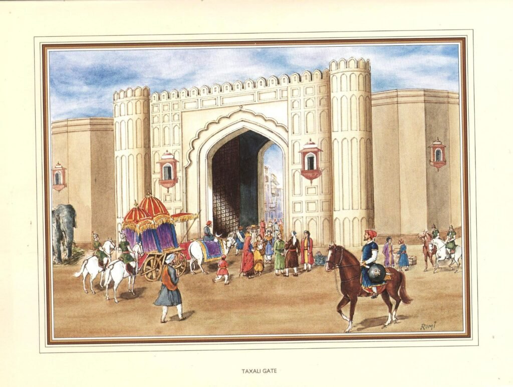 This gate was called Taxali because of a Royal Mint (known as Taxal in Urdu) situated there during the Mughal era. That mint no longer exists there but the old Taxali mosque still survives. As we enter the gate from the Lady Wallington Hospital, we see the famous Food Street of Lahore, the colors and illumination on the Food Street and Andaaz Restaurant has given another life to this gate which was dead because of the taboos related with it. The area inside the gate presents you a vibrant and dazzling life with colors and tempting food aroma to enthrall you at every stride. The gate has historical importance in terms of personalities residing there, markets and food and music.